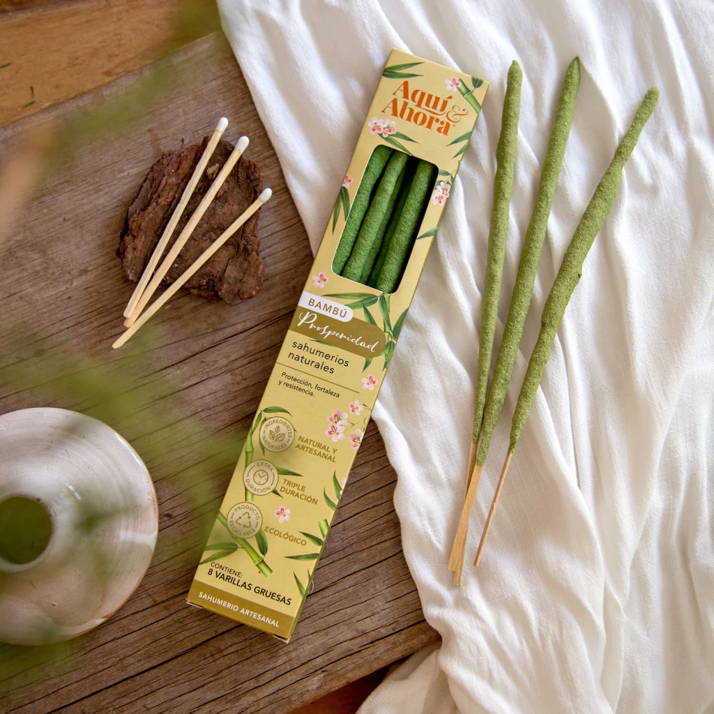 Son naturales de extra duración, 100% artesanales con varilla de bambú en el centro. Caja de presentación impresa con ventana.